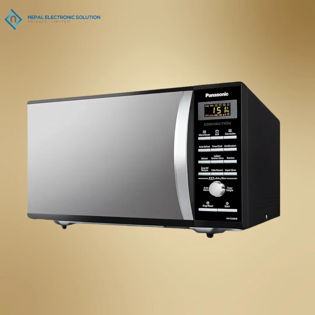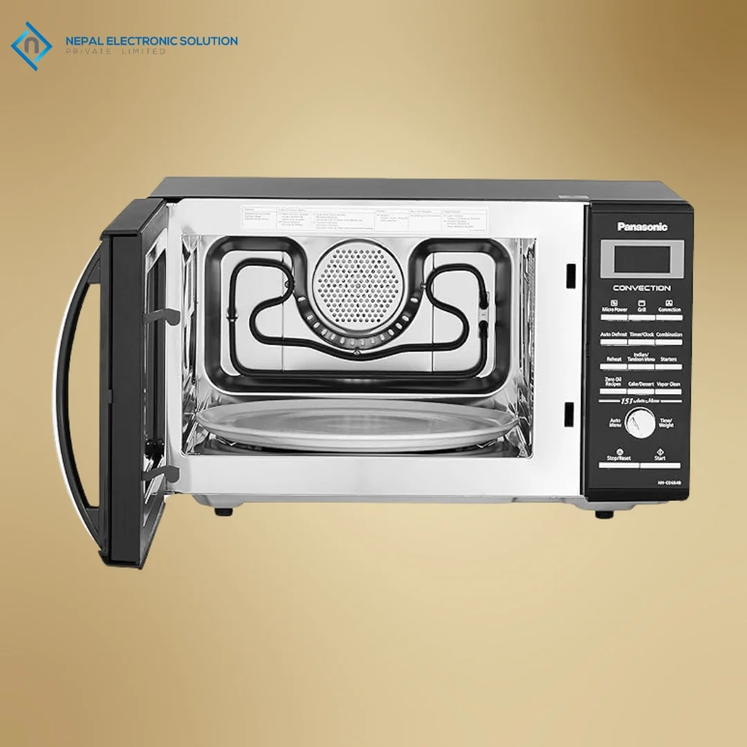 The Panasonic NN-CD684BFDG is a 27-litre convection microwave designed for versatile kitchen use. With a sleek black exterior featuring a stylish black mirror finish, this microwave blends modern aesthetics with advanced functionality. Measuring 47.1 x 51.3 x 30.6 cm, it offers ample capacity while fitting well in most kitchen spaces.