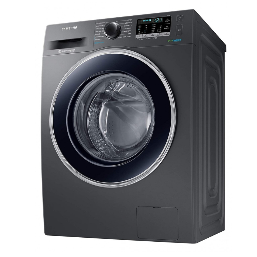 * Tested in accordance with IEC 60456-2010/4kg Wash Load/Super Eco Wash cold (WF80F5E5U4W) vs. Cotton 40° without Eco Bubble (WF0702WKU). Individual results may vary.