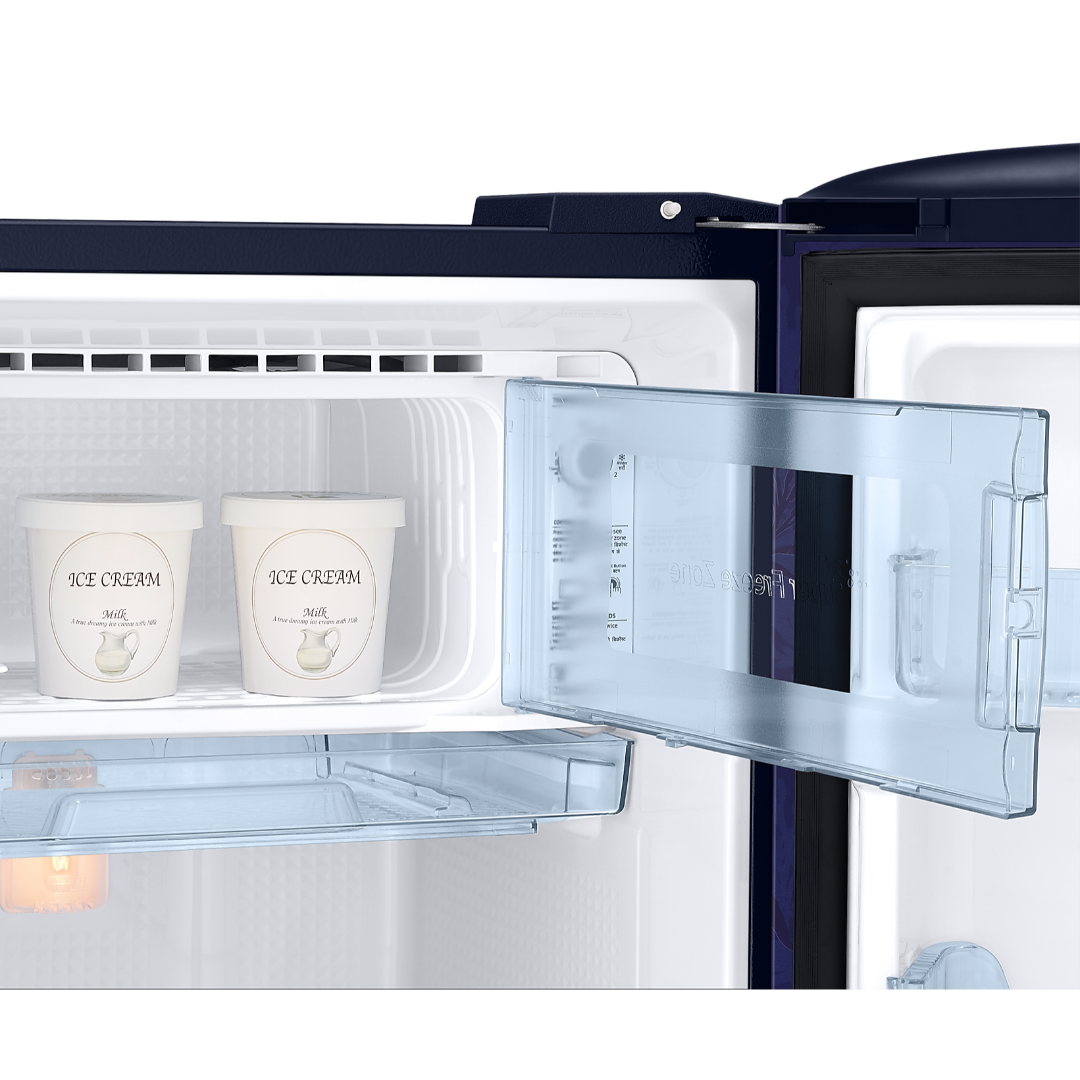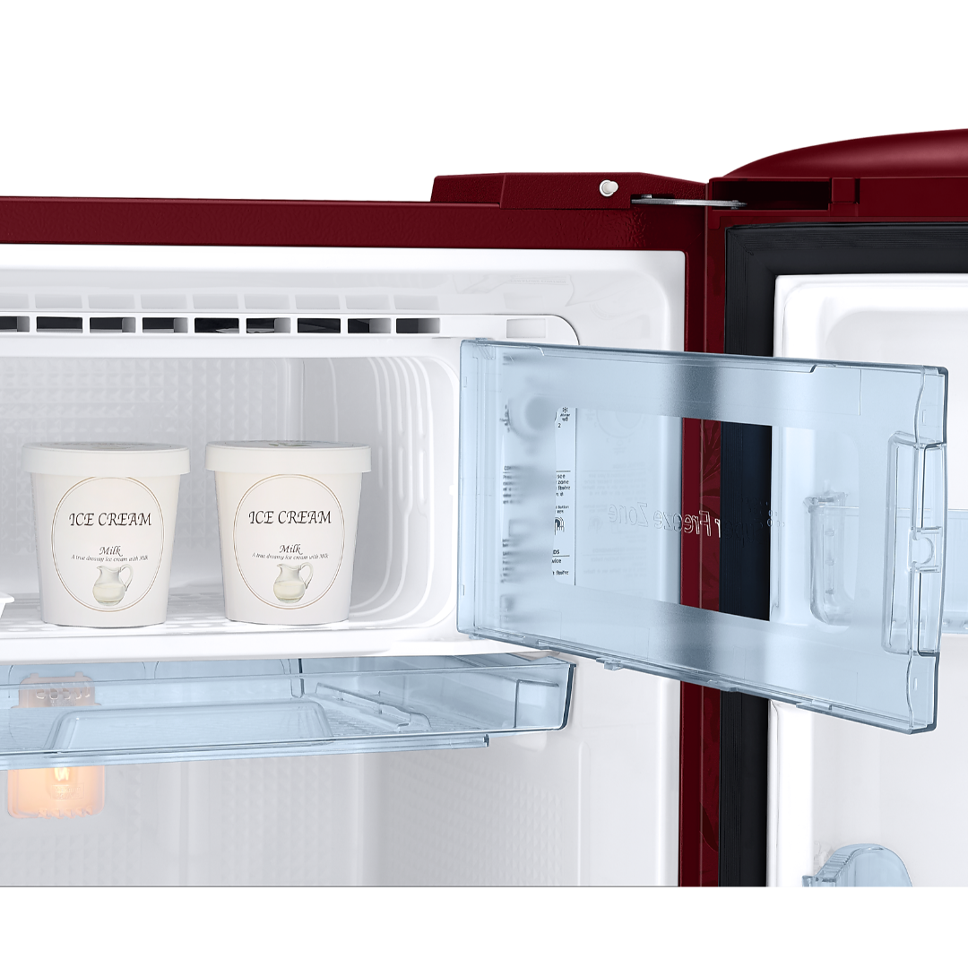 Has a truly distinctive Grandé door design available in a choice of various colours. It enhances the look of refrigerator with a fine line aesthetically placed towards the bottom to add a sleek and elegant look to your kitchen.